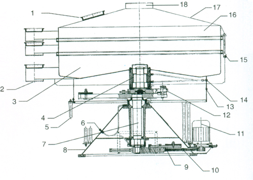 ★因此建立水平與拋擲三維翻滾運動。物料從中心到外緣在整個篩面上均勻分散,從而以螺旋運動往軸向傳播。細小顆粒從而完成了整個篩分過程。